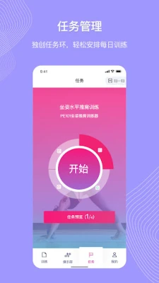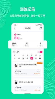 独有的任务环设计,帮助您管理每天的训练安排,训练任务一目了然,一键执行,摆脱繁琐记事本。