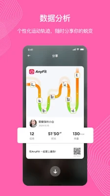 使用AnyFit智能设备健身,训练完成后,系统实时记录您的训练成果和数据分析,同时联动手机会员端APP,同步保存运动数据报告,让您拥有属于自己的专属训练小秘书。