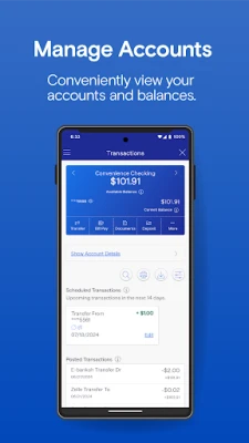 • Deposit checks anytime, anywhere using mobile deposit
