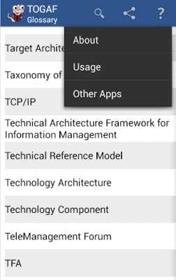 Confused by TOGAF terms? Want to find out the meaning in seconds? Glossary for TOGAF is a simple mobile reference to help you quickly find the meaning of TOGAF terms and abbreviations.