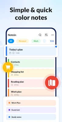 Notein - Notepad, Notes, Lists is an awesome notes app for Android. You can write notes with colorful backgrounds for easy notes management. Sticky notes widgets, note reminders, note lock, etc., all make note-taking so simple, quick, and safe. Take notes just like using pen and paper.