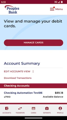 ** Special note: To use the mobile banking app, you must sign up inside online banking. www.mybankpsb.com ** Here are the features available to you: • Check your balances • Pay bills • Transfer money between accounts • Deposit checks • View your statements • Re-order checks Disclosures: Must be an online banking customer. To pay bills, you must use the app’s BillPay. May require user to download a PDF viewer. Peoples Bank is a Member FDIC and Equal Housing Lender.
