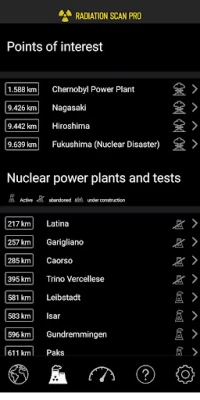 Through the Google map, you will be able to see the active nuclear power plants and all the detailed data of each individual power plant with the distance from your position.