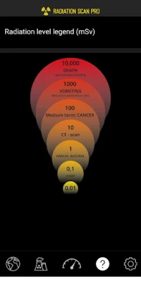 Warning: the application does not measure radiation through the sensors of the device, but shows the radiation of the place through algorithms by taking data from the relevant stations near your position.