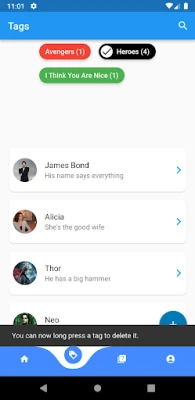 One great feature of this app is Tags. You can use tags to organise your contacts. One contact can have many contacts. More importantly, you can also give different colours to different tags.