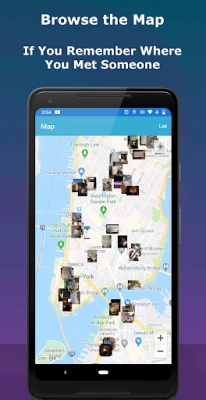 🕵️When you are ready to find your contact again, you can search your address book by photo📸, location on the map🗺️, the date/time you met⌚, keywords📝, or all of the above!
